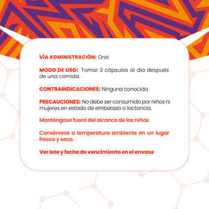 MODO DE USO: Tomar 1 a 3 cápsulas al día o según criterio médico.