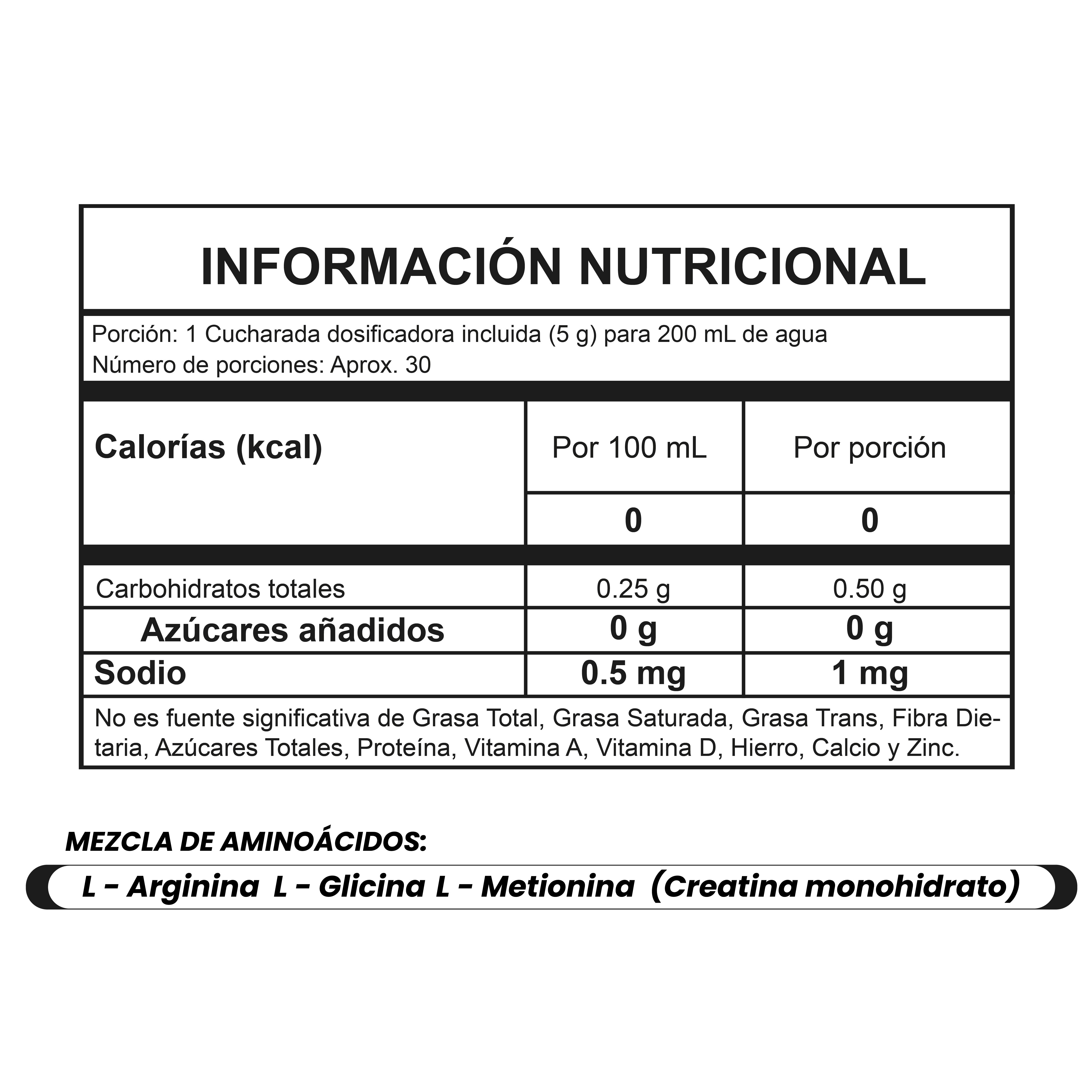 CREABOLIC es un alimento que contiene, isomaltulosa, mezcla aminoácidos ( L- arginina, L- glicina, L – metionina (Creatina Monohidrato)*), entre otros ingredientes.
