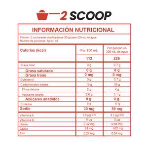 Tamaño de porción sugerida: 90g (3 cucharadas de la cuchara medidora incluida en el envase)