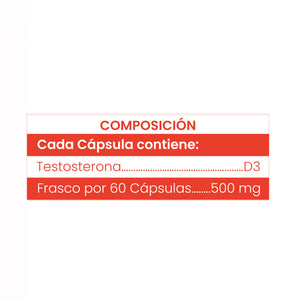 PRODUCTO HOMEOPÁTICO OFICINAL Cada Cápsula contiene: Testosterona - D3 Frasco por 60 Cápsulas- 500 mg