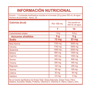 Nuestro pre-entreno eleva tu rutina de ejercicio a otro nivel. Con una poderosa combinación de ingredientes como cafeína, beta alanina, citrulina y teanina, prepárate para experimentar un aumento significativo en energía, resistencia y concentración mental. Aprovecha al máximo cada sesión de entrenamiento y alcanza tus metas fitness de manera efectiva.
